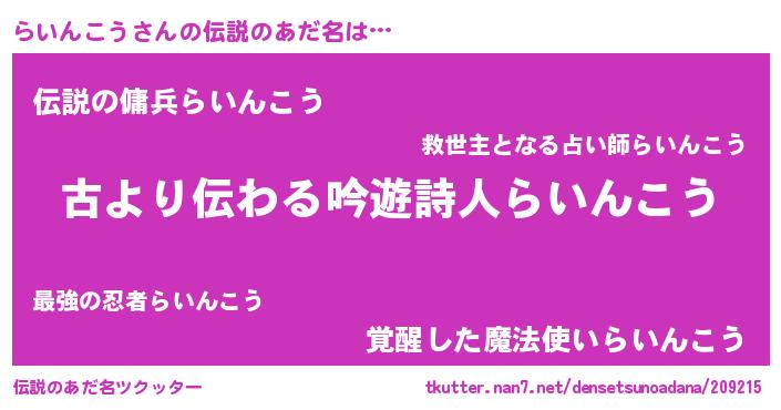 | 肩書あだ名 | 『らいんこう中佐』『らいんこう先生』 |
