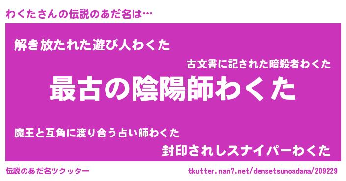 | 意味不明あだ名 | 『住所不定無職わくた(89歳)』 |