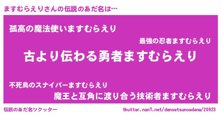 | ヒーロー風カッコイイあだ名 | 『ネオマスムラエリ』『魔戒騎士マス』 |