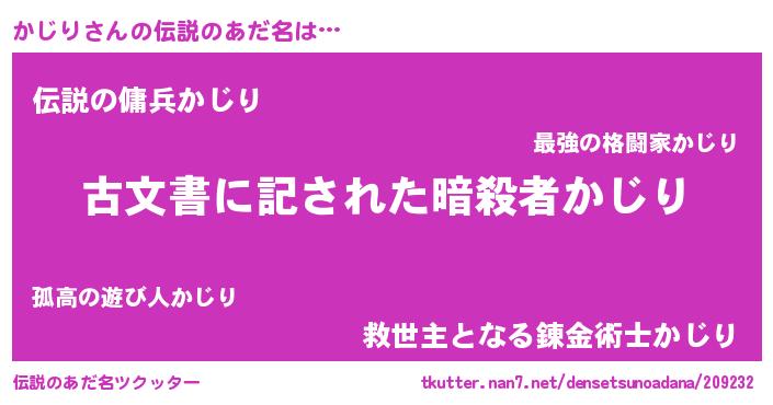 | ヒーロー風カッコイイあだ名 | 『仮面カジダー』『ネオカジリ』 |