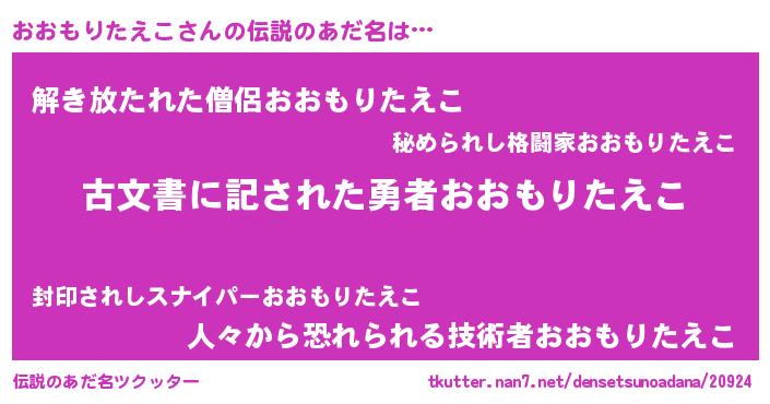 | ヒーロー風カッコイイあだ名 | 『ネオオオモリタエコ』『仮面オオダー』 |