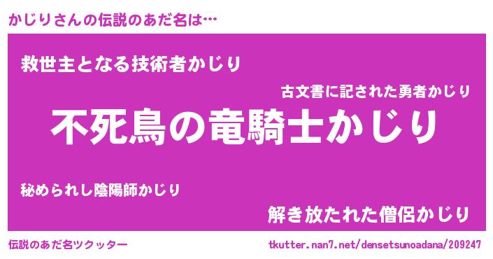 | 男性向けラノベタイトル風あだ名 | 『はたらくかじりさま!』『かじりの憂鬱』 |