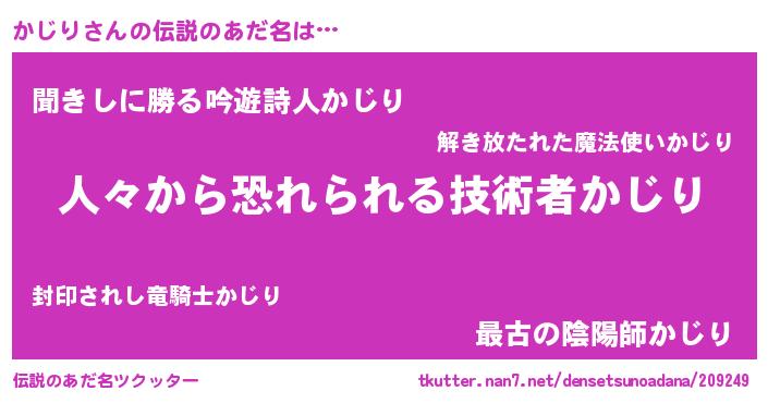 | ヒーロー風カッコイイあだ名 | 『正義の使者かじり』『ネオカジリ』 |
