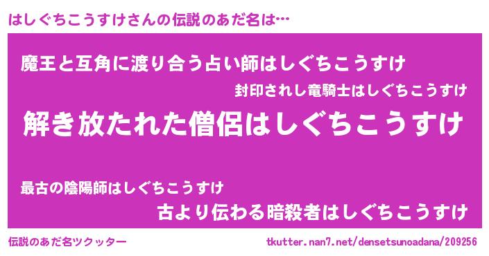 | ヒーロー風カッコイイあだ名 | 『幻影騎士ハシ』『ネオハシグチコウスケ』 |