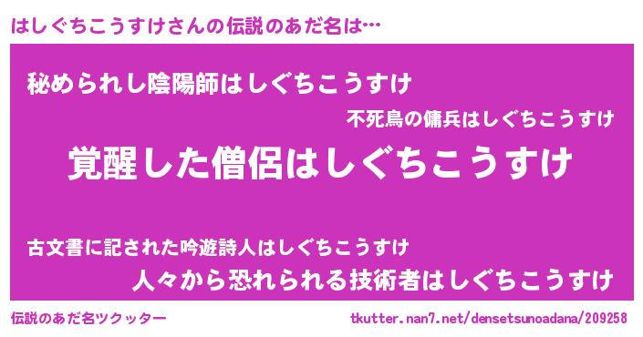 | 男性向けラノベタイトル風あだ名 | 『はしぐちこうすけの嫁は女の子じゃないと思った?』 |