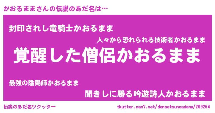 | 男性向けラノベタイトル風あだ名 | 『かおるままの嫁は女の子じゃないと思った?』 |