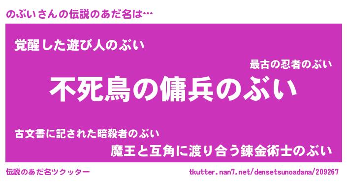 | 意味不明あだ名 | 『住所不定無職のぶい(62歳)』『自称のぶい』 |