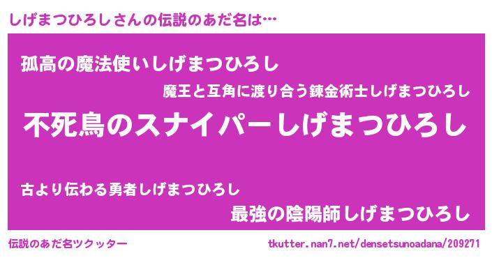 | 胡散臭い通販商品みたいなあだ名 | 『モテモテ間違いなし霊験あらたかなお札…その名も「しげまつひろし」』 |