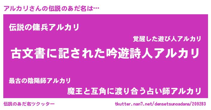 | 意味不明あだ名 | 『永久保存アルカリ』『ペロリンアルカリ』 |