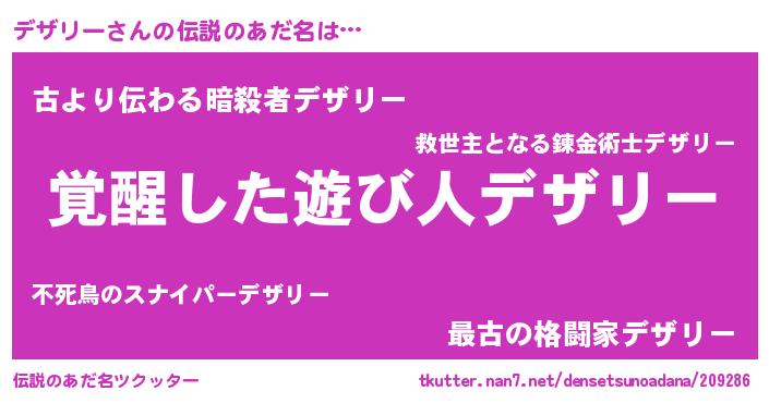 | 意味不明あだ名 | 『住所不定無職デザリー(93歳)』 |