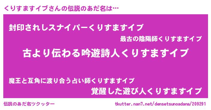 | ヘコむあだ名 | 『くりすますイブ(小並感)』『くりっふぃ~』 |