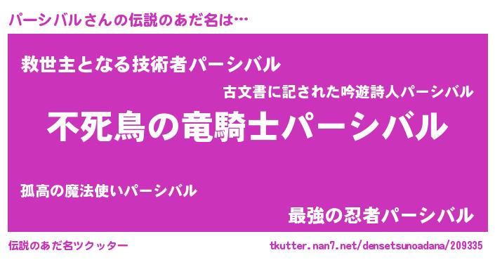 | 意味不明あだ名 | 『自称パーシバル』『ペロリンパーシバル』 |