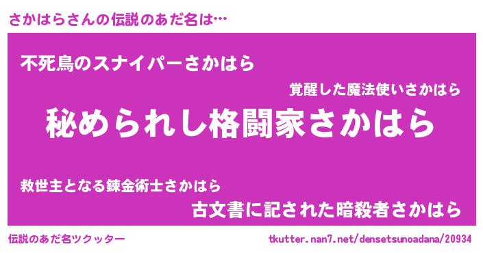 | ヒーロー風カッコイイあだ名 | 『仮面サカダー』『超時空戦士サカハラ』 |