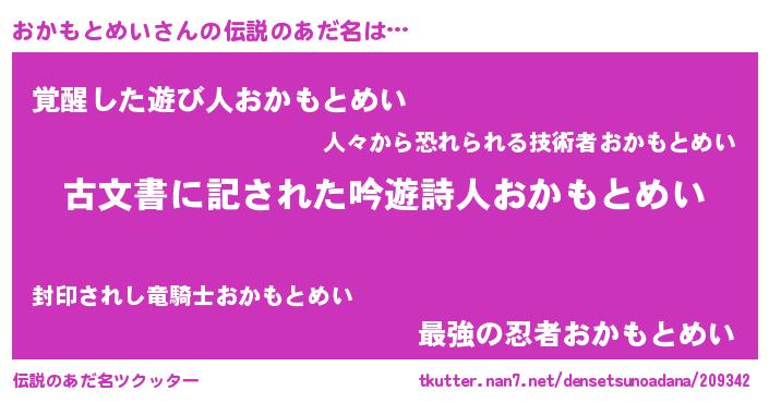 | 意味不明あだ名 | 『永久保存おかもとめい』 |