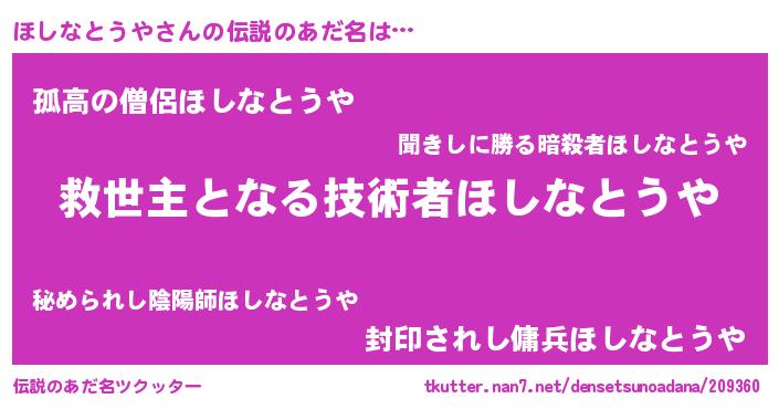 | ヒーロー風カッコイイあだ名 | 『天空の使者ほしなとうや』 |