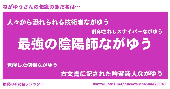 | ヘコむあだ名 | 『酢こんぶ』『ながゆう(小並感)』 |