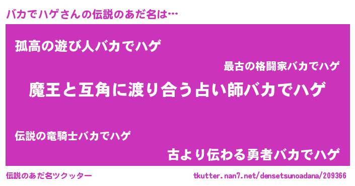 | ヒーロー風カッコイイあだ名 | 『愛の使者バカでハゲ』『仮面バカダー』 |