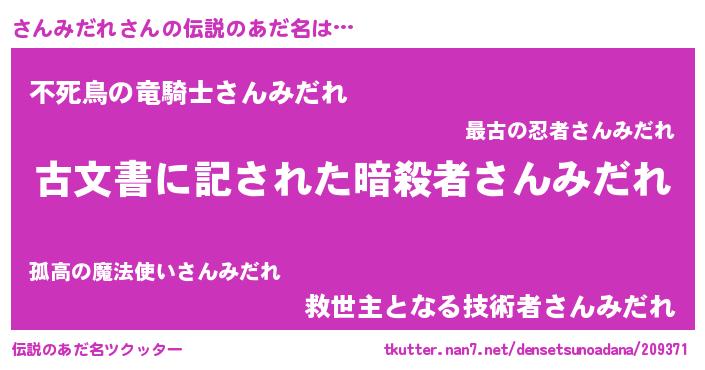 | 男性向けラノベタイトル風あだ名 | 『Re:さんみだれから始める異世界生活』 |