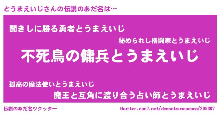 | 意味不明あだ名 | 『自称とうまえいじ』 |
