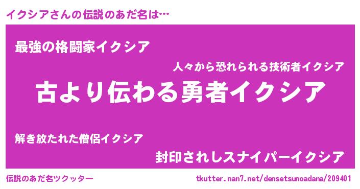 | ヒーロー風カッコイイあだ名 | 『ネオイクシア』『仮面イクダー』 |