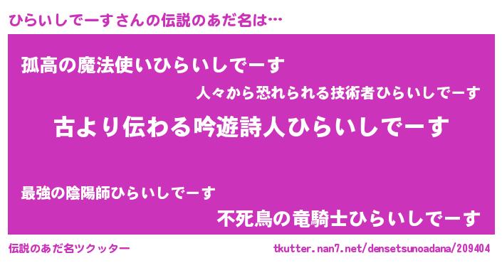 | ヒーロー風カッコイイあだ名 | 『仮面ヒラダー』『ネオヒライシデース』 |