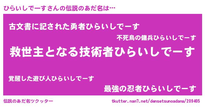 | ヒーロー風カッコイイあだ名 | 『天空の使者ひらいしでーす』 |