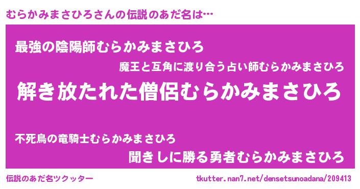 | 意味不明あだ名 | 『とにかく怪しいむらかみまさひろ』 |