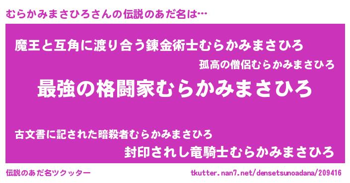 | ファンタジー風あだ名 | 『エターナルムラカミマサヒロー』 |
