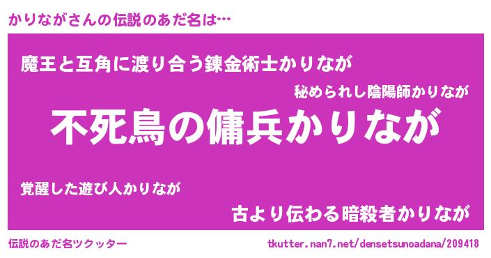| 胡散臭い通販商品みたいなあだ名 | 『モテモテ間違いなし水晶球…その名も「かりなが」』 |