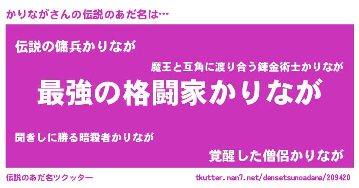| 女子向けラノベタイトル風あだ名 | 『かりながの婚約者』『闇のかりなが』 |