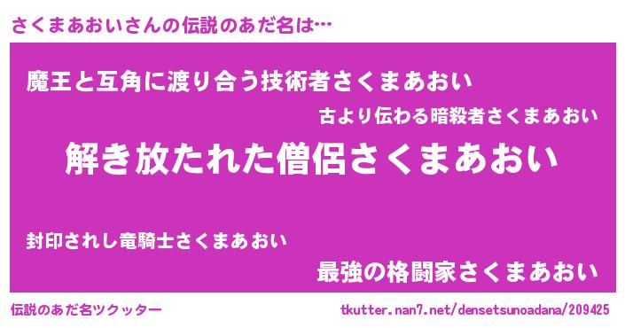 | ヒーロー風カッコイイあだ名 | 『幻影騎士サク』『最強戦士サクマアオイ』 |
