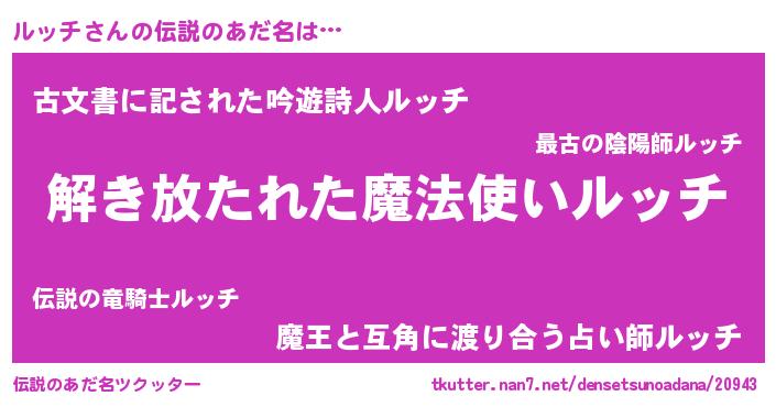 | 男性向けラノベタイトル風あだ名 | 『この素晴らしい世界にルッチを!』 |