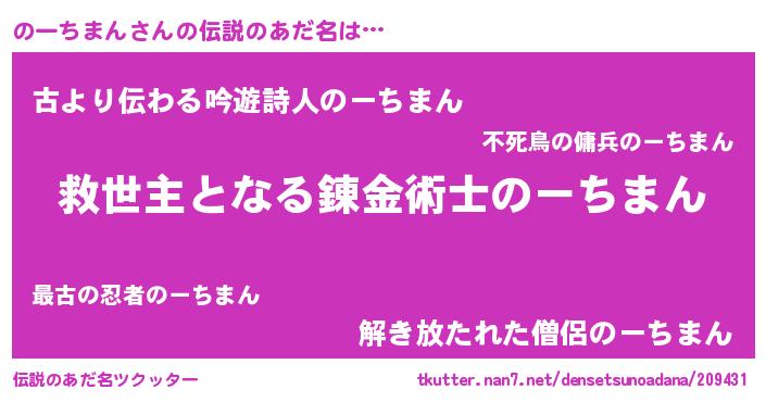| ヒーロー風カッコイイあだ名 | 『慈愛の使者のーちまん』『幻影騎士ノー』 |