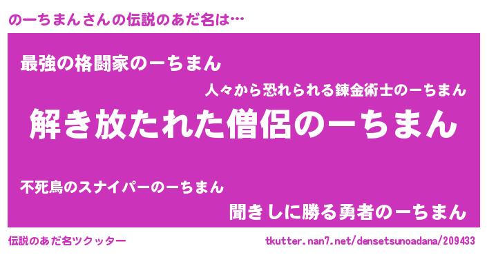 | 男性向けラノベタイトル風あだ名 | 『のーちまんの嫁は女の子じゃないと思った?』 |