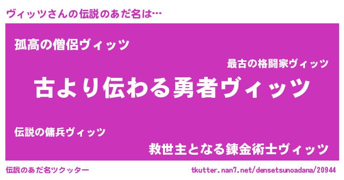 | ヘコむあだ名 | 『ヴィッツ(遠い目)』『ヴィを』 |