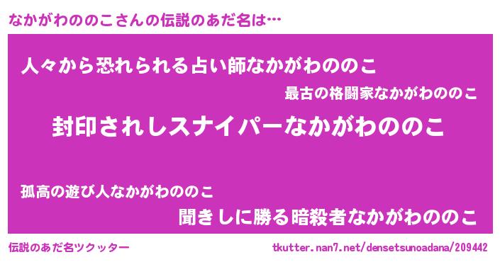 | 胡散臭い通販商品みたいなあだ名 | 『億万長者になれる霊験あらたかなお札…その名も「なかがわののこ」』 |