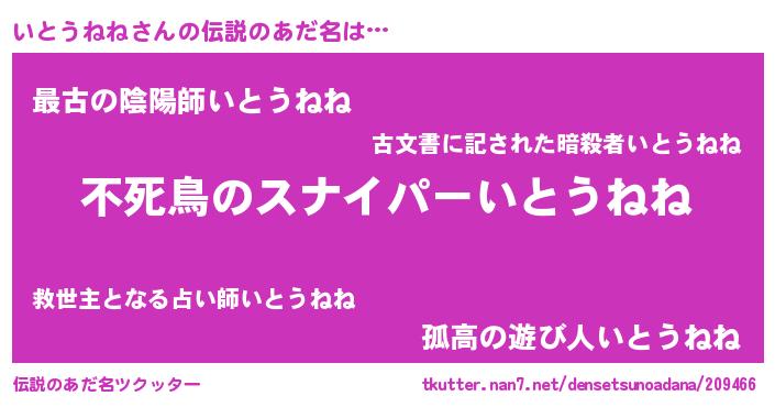 | 胡散臭い通販商品みたいなあだ名 | 『モテモテ間違いなし霊験あらたかなお札…その名も「いとうねね」』 |