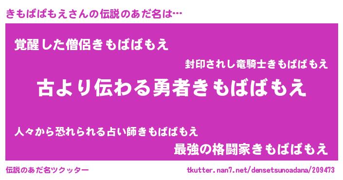 | 意味不明あだ名 | 『永久保存きもばばもえ』 |