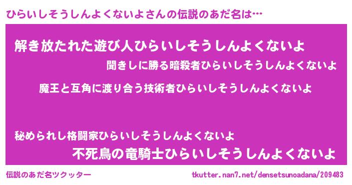 | ヒーロー風カッコイイあだ名 | 『愛の使者ひらいしそうしんよくないよ』 |