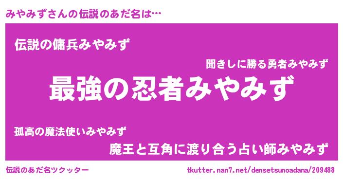 | ヒーロー風カッコイイあだ名 | 『最強戦士ミヤミズ』『スーパーミヤミズ』 |