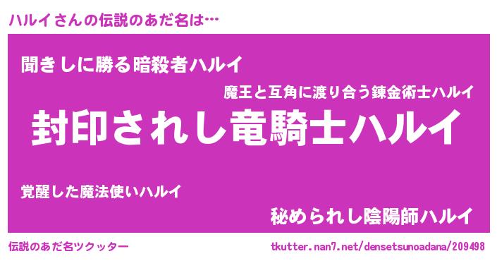 | ファンタジー風あだ名 | 『ハルフェル』『ハルディッシュ』 |