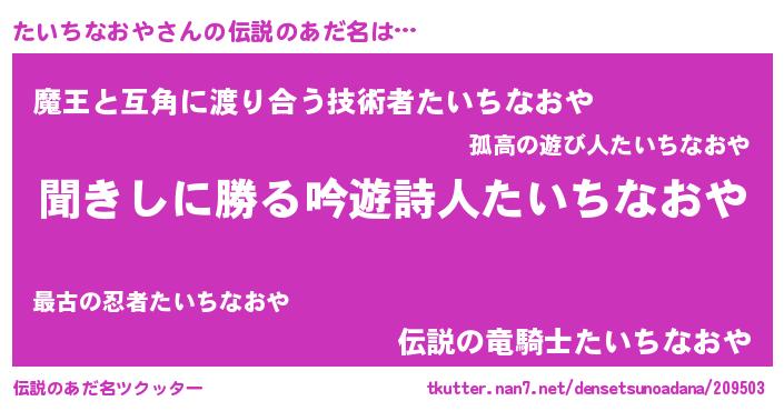 | 男性向けラノベタイトル風あだ名 | 『たいちなおやという概念が存在しない退屈な世界 』 |