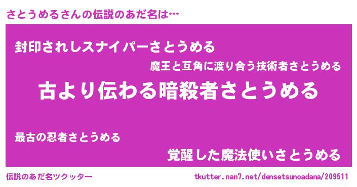 | ヒーロー風カッコイイあだ名 | 『ネオサトウメル』『スーパーサトウメル』 |