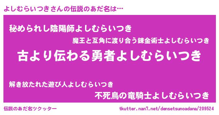 | 意味不明あだ名 | 『永久保存よしむらいつき』 |