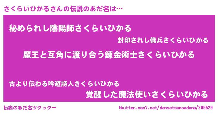 | 胡散臭い通販商品みたいなあだ名 | 『お金では代えられない隕石のかけら…その名も「さくらいひかる」』 |