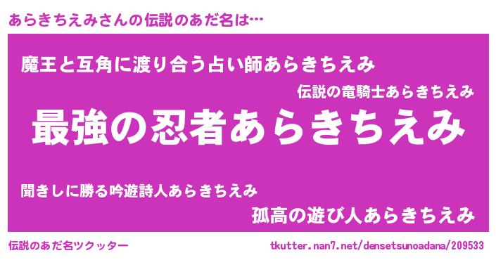 | 意味不明あだ名 | 『自称あらきちえみ』 |