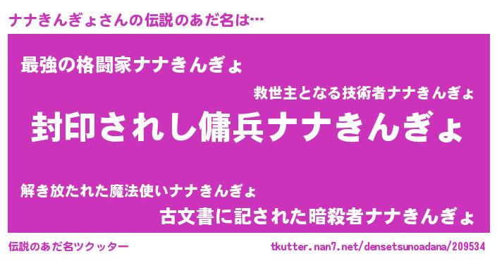 | ヒーロー風カッコイイあだ名 | 『仮面ナナダー』『スーパーナナキンギョ』 |