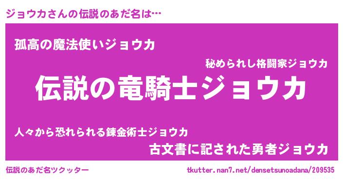 | 意味不明あだ名 | 『ペロリンジョウカ』『永久保存ジョウカ』 |