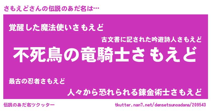 | 男性向けラノベタイトル風あだ名 | 『さもえどの憂鬱』『サモエドスレイヤー』 |