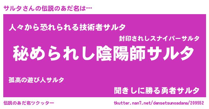 | 意味不明あだ名 | 『サルタフォーエバー』『永久保存サルタ』 |